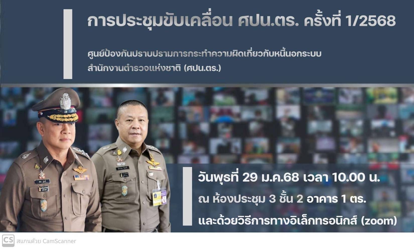 ในการประชุมครั้งนี้ ที่ประชุมได้แจ้งแนวทางการดำเนินการของ ศปน.ตร.ในรอบปีที่ผ่านมา , มีการรายงานผลการปฏิบัติ ของ ศปน.ตร. ตั้งแต่ 1-31 ธ.ค.67 และสรุปผลการระดมกวาดล้างจับกุมผู้กระทำความผิดเกี่ยวกับหนี้นอกระบบ ระหว่างวันที่ 17-26 ธ.ค.67 จากนั้นให้แต่ละหน่วยประกอบด้วย บช.น., ภ.1 – 9, บช.ก, สตม. และ บช.สอท. รายงานผลการจับกุมผู้ต้องหารายสำคัญ , รายงานผลการจับกุมหนี้นอกระบบรายสำคัญ , รายงานผลการดำเนินการด้านการประชาสัมพันธ์เกี่ยวกับการจับกุมผู้กระทำความผิดเกี่ยวกับหนี้นอกระบบของหน่วย , ข้อมูลการจัดกิจกรรม “ตลาดนัดแก้หนี้” ในพื้นที่รับผิดชอบ บช.น. และ ภ.1 – 9 ตลอดจนได้ประชุมหารือแนวทางปฏิบัติกรณีที่มีปัญหาอุปสรรค พร้อมมีข้อกำชับสั่งการในการปฏิบัติให้กับหน่วยที่เข้าร่วมประชุม