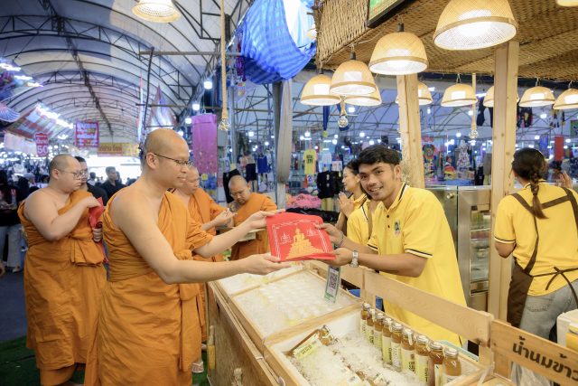 พ่อค้า แม่ค้าขายงานวัดไร่ขิง ดีใจ ได้รับผ้ายันต์และวัตถุมงคลที่ระลึก วันสุดท้ายงานประจำปี
