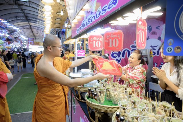 คณะสงฆ์วัดไร่ขิงนำโดย พระวชิรปัญญาภรณ์ ผู้ช่วยเจ้าอาวาสวัดไร่ขิง พระอารามหลวง พร้อมคณะสงฆ์วัดไร่ขิง พระอารามหลวง นำวัตถุมงคลและผ้ายันต์หลวงพ่อวัดไร่ขิง เดินแจกให้กับพ่อค้า แม่ค้า ที่ประมูลร้านค้าและได้มาขายของ ในงานเทศกาลนมัสการปิดทองหลวงพ่อวัดไร่ขิงประจำปี 2569 เพื่อความเป็นมงคล ตลอด9วัน9คืน ซึ่งวันนี้เป็นวันสุดท้ายของงานประจำปี แต่ในส่วนของร้านค้ายังคงมีขายสินค้าต่อไปได้อีก 10 วัน