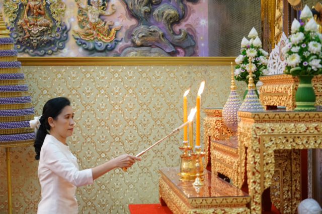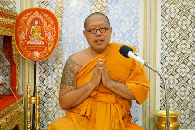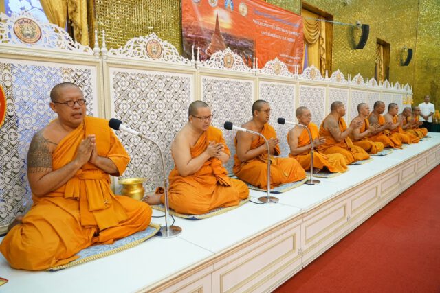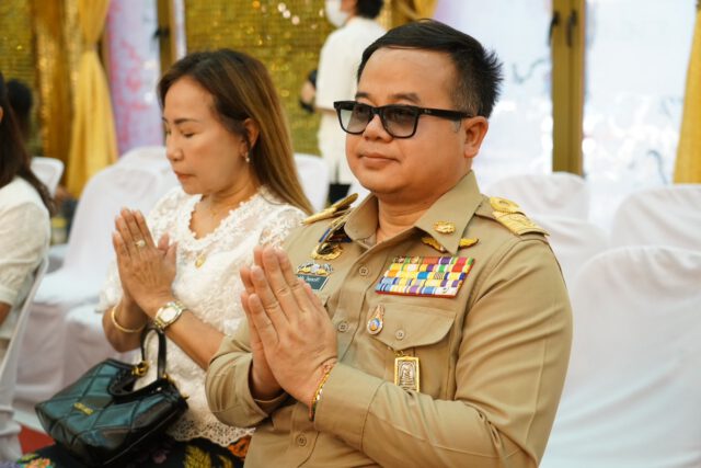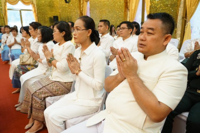 จากนั้น พระครูปลัดสิทธิวัฒน์ หลวงพี่น้ำ เจ้าอาวาสวัดไผ่ล้อม นำคณะสงฆ์วัดไผ่ล้อม 10 รูป เจริญพระพุทธมนต์ ให้ศีลและพร จากนั้นประธานผู้นำเข้าร่วมในพิธีสังฆทาน ภัตตาหารและจตุปัจจัยไทยธรรมแด่พระสงฆ์ โดยพระครูปลัดสิทธิวัฒน์ หลวงพี่น้ำฝน เจ้าอาวาสวัดไผ่ล้อมแสดงปาฐกถาธรรม โดยให้แนวทางในการดำเนินชีวิตและหลักการทำงาน ให้นำหลักธรรมคำสั่งสอนขององค์สมเด็จพระสัมมาสัมพุทธเจ้าเป็นแนวทาง ซึ่งวัดไผ่ล้อมได้มีการปรับสถานที่ให้มีการสงเคราะห์และช่วยเหลือญาติโยม ทั้งคนเป็นและคนตาย ซึ่งมีโรงพยาบาลนครปฐม สาขาวัดไผ่ล้อม ในการดูแลสุขภาพของญาติโยมและมีโครงการสวดเผาฟรี โดยไม่คิดค่าใช้จ่าย ซึ่งยังมีการส่งเสริมสนับสนุนด้านการศึกษา ศิลปวัฒนธรรมไทยให้คงอยู่คู่กับวิถีชุมชนในทุกมิติ จากนั้นพระสงฆ์อนุโมทา ก่อนที่ประธานกรวดน้ำอุทิศส่วนกุศล เป็นอันเสร็จพิธี