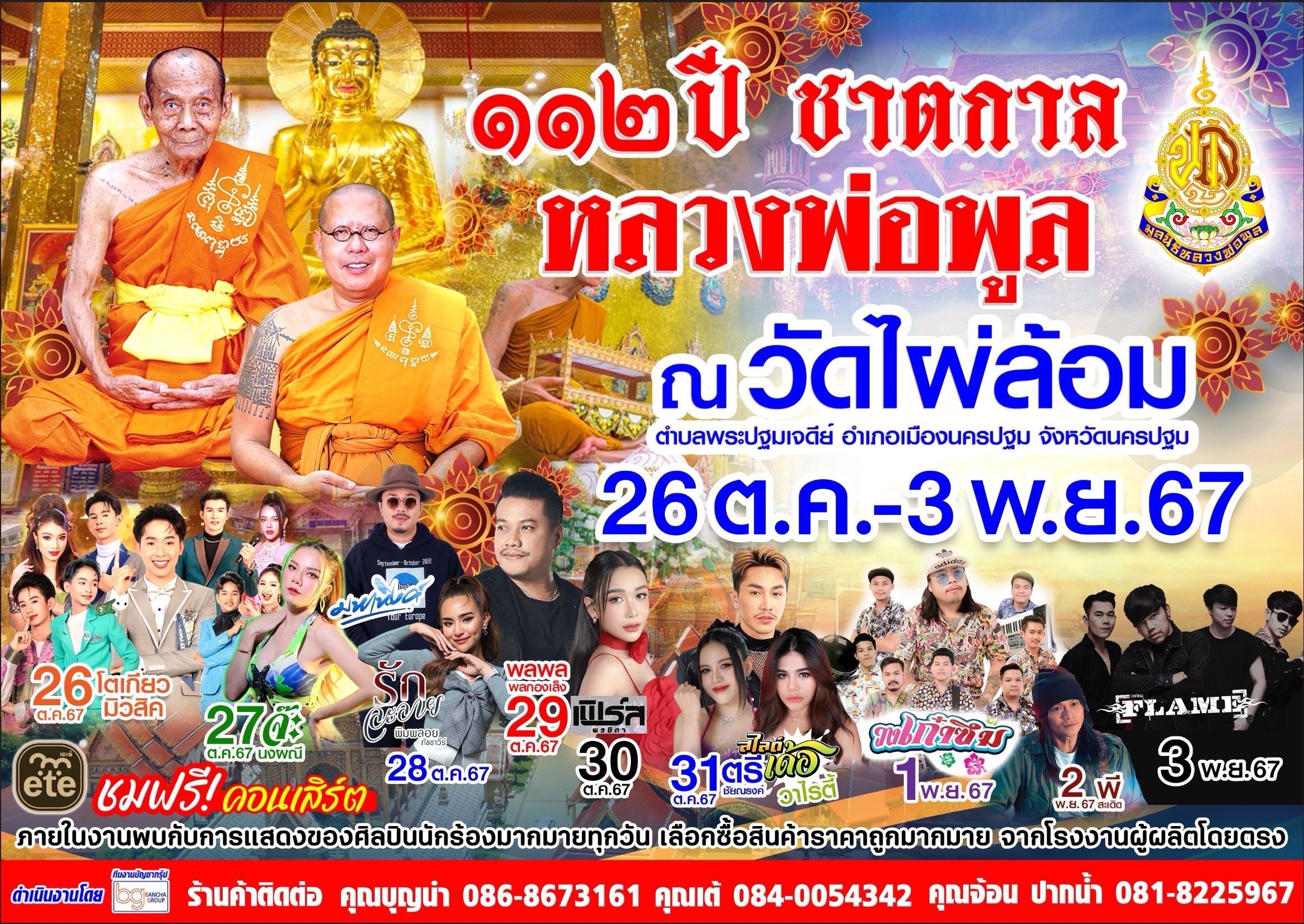 นครปฐม งาน112 ปี ชาตกาล หลวงพ่อพูล วัดไผ่ล้อม หลวงพี่น้ำฝน จัดรำลึกยิ่งใหญ่สานต่อ หลวงพ่อของเรา