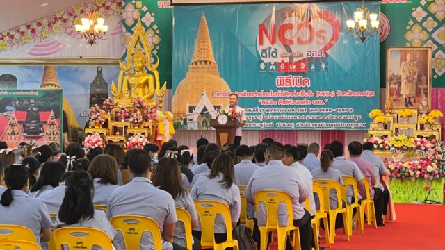 นครปฐม อสม.ขานรับความร่วมมือ NCDs ดีได้ด้วยกลไก อสม. ร่วมปรับพฤติกรรมเชิงรุก ต่อสู้และเอาชนะโรค NCDs แสดงสัญลักษณ์เพื่อสร้างกระแสและขับเคลื่อนครอบคลุมทั่วพื้นที่