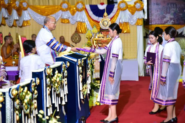องคมนตรี เป็นผู้แทนพระองค์ ในพิธีพระราชทานปริญญาบัตรแก่ผู้สำเร็จการศึกษาจากมหาวิทยาลัยเทคโนโลยีราชมงคลพระนคร และมหาวิทยาลัยเทคโนโลยีราชมงคลรัตนโกสินทร์ ประจำปีการศึกษา 2566 ณ หอประชุมใหญ่พุทธมณฑล สำนักงานพระพุทธศาสนาแห่งชาติ อำเภอพุทธมณฑล จังหวัดนครปฐม
