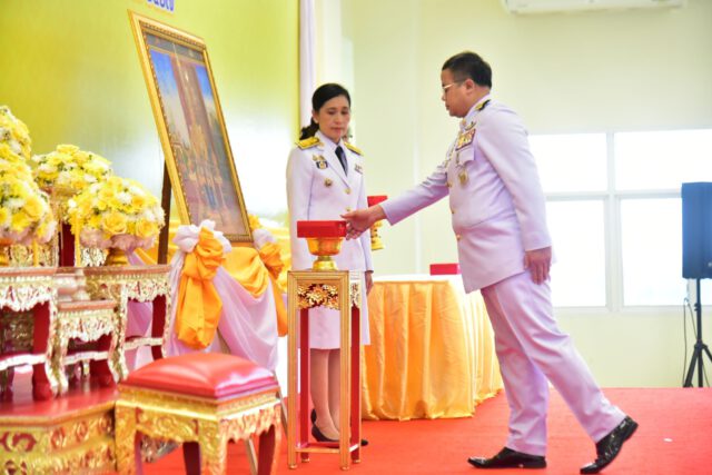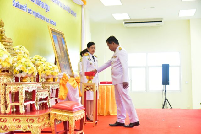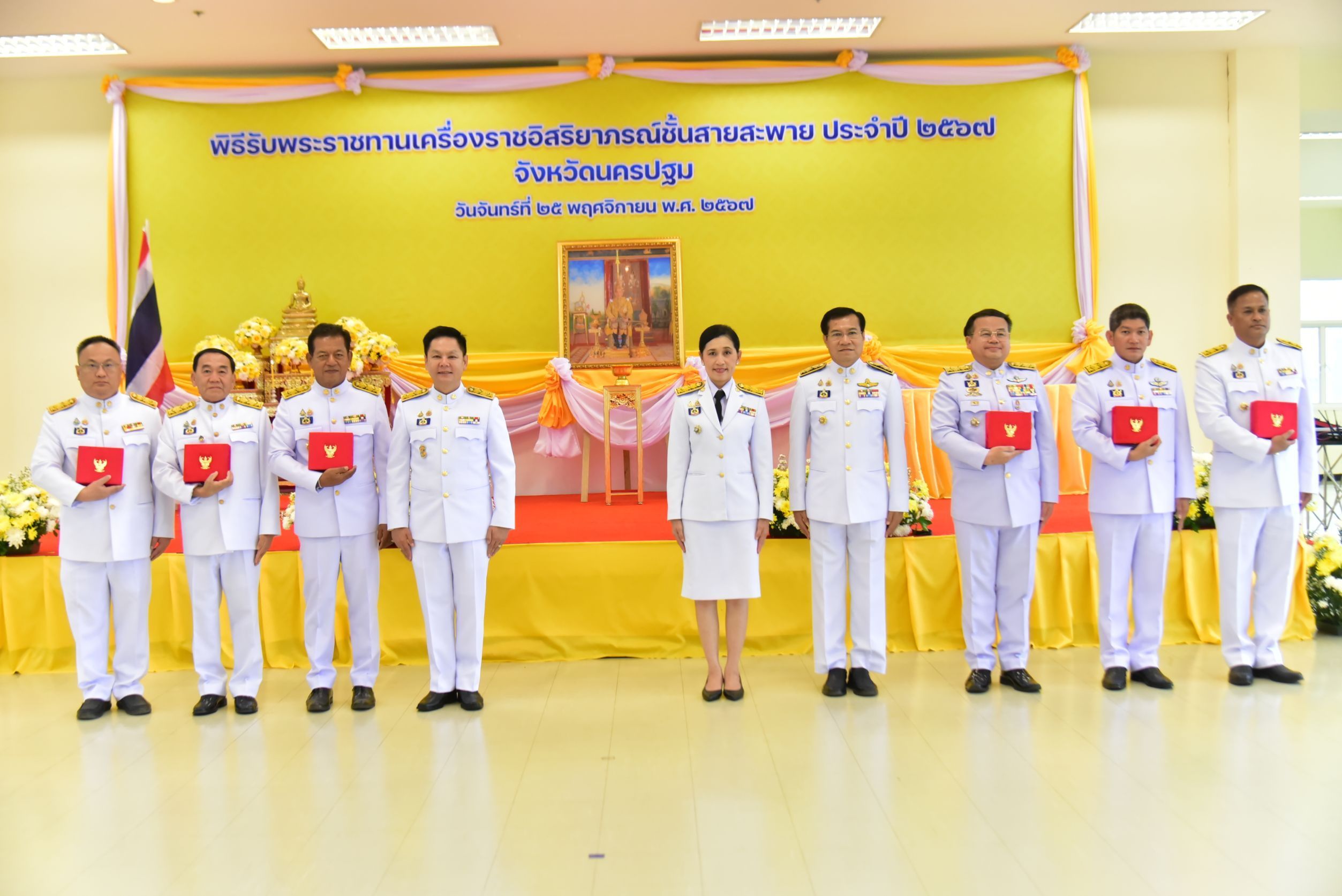 จังหวัดนครปฐม จัดพิธีรับพระราชทานเครื่องราชอิสริยาภรณ์ชั้นสายสะพาย ประจำปี 2567 เบื้องหน้าพระบรมฉายาลักษณ์ พระบาทสมเด็จพระเจ้าอยู่หัว แก่ผู้ที่ได้รับพระราชทานเครื่องราชอิสริยาภรณ์ชั้นประถมาภรณ์ช้างเผือก (ป.ช.) สังกัดกระทรวงมหาดไทย เฉพาะที่ปฏิบัติหน้าที่ในส่วนภูมิภาค