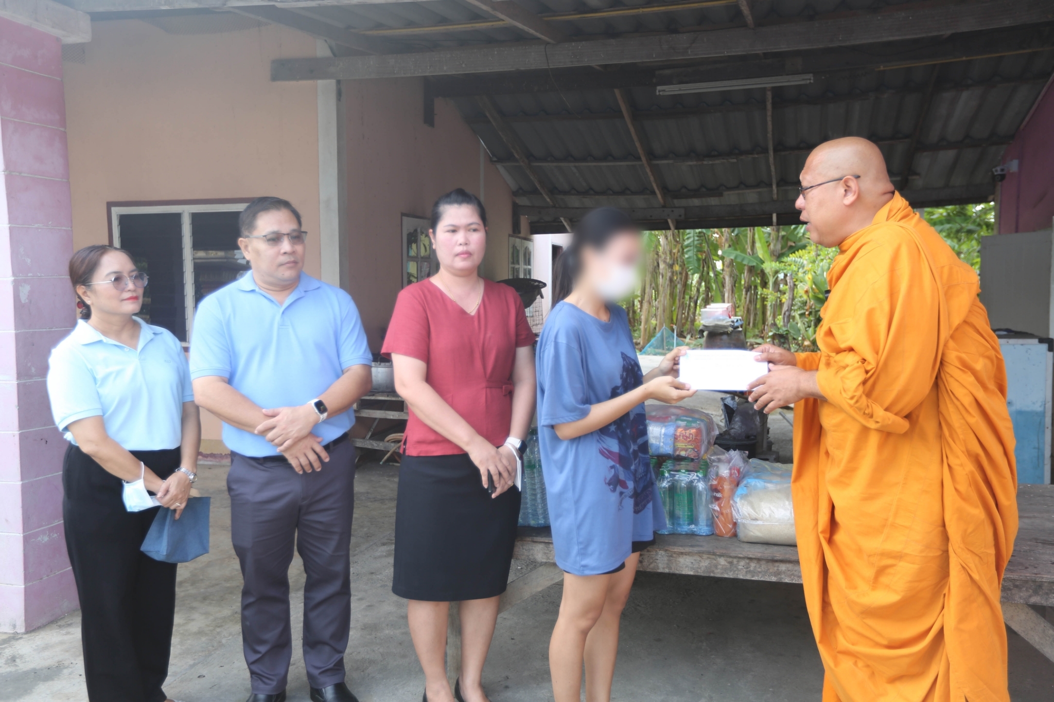 วันที่ 14 ธันวาคม 67 พระครูปลัดสิทธิวัฒน์ (หลวงพี่น้ำฝน) เจ้าอาวาสวัดไผ่ล้อม อ.เมือง จ.นครปฐม เดินทางไปยังพื้นที่ ตำบลสามควายเผือก อำเภอเมือง จังหวัดนครปฐม พร้อมด้วย นายวุฒิชัย รักชาติ ผู้อำนวยการวิทยาลัยอาชีวศึกษาจังหวัดนครปฐม คณะครู เพื่อเยี่ยมปลอบขวัญให้กำลังใจกับ น้องออย (นามสมตมมติ) อายุ 19 ปี นักศึกษาชั้นปีที่ 1 ซึ่งถูกคนในบ้านวางเพลิงเผาบ้าน 2 หลังและรถกระบะ 1 คัน พร้อมมีการขู่ฆ่ายกครัว ซึ่งเหตุเกิดขึ้นเมื่อกลางดึกของคืนวันที่ 10 ธันวาคมที่ผ่านมา