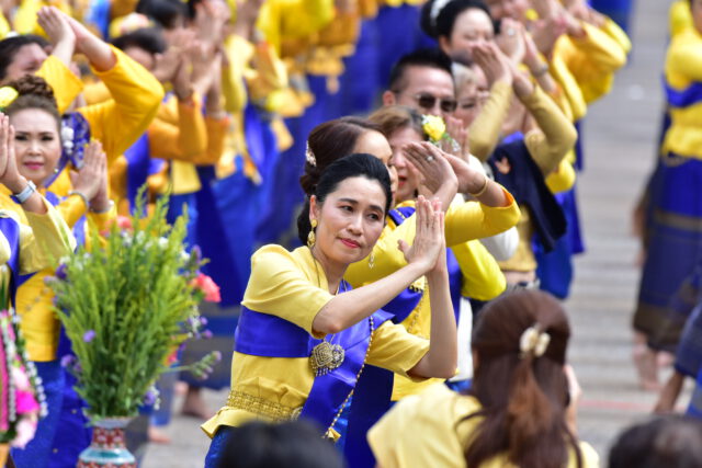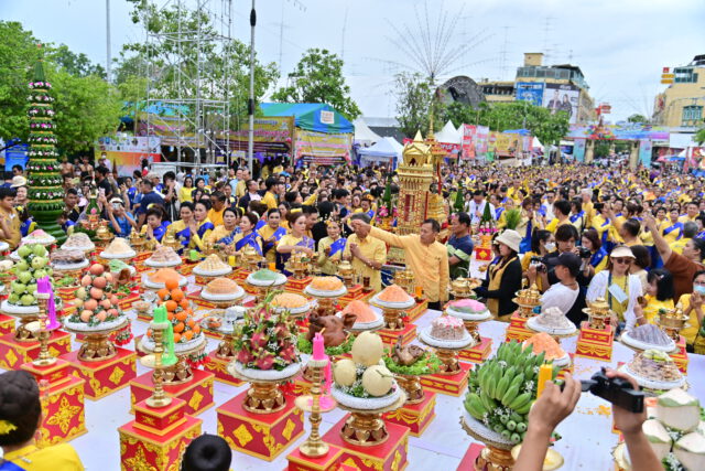 นอกจากนี้ มีพิธีเจริญพระพุทธมนต์เพื่อน้อมสักการะแสดงความกตัญญูกตเวทีต่อพระรัตนตรัย เหล่าเทพยดาที่ได้คุ้มครองชาวจังหวัดนครปฐม และรำถวายสักการะพระบรมสารีริกธาตุและสิ่งศักดิ์สิทธิ์ที่สถิตอยู่ ณองค์พระปฐมเจดีย์ จากนั้น นางสาวอโรชา นันทมนตรี รองผู้ว่าราชการจังหวัดนครปฐม ได้นำพี่น้องประชาชนชาวจังหวัดนครปฐม จากทั้ง 7 อำเภอ แต่งกายด้วยเสื้อสีเหลือง สไบน้ำเงิน นุ่งผ้าชื่นหรือโจงกระเบนสีน้ำเงิน จำนวน 1,430 คน รำบวงสรวงในครั้งนี้ ซึ่งเชื่อว่าในการทำพิธีครั้งนี้ จะนำมาซึ่งความเป็นสิริมงคลแก่ตนเอง และครอบครัว อีกทั้งเป็นการขอพรให้สิ่งศักดิ์สิทธิ์คุ้มครองปกปักรักษาให้ครอบครัวอยู่ร่มเย็นเป็นสุขทำมาค้าขายเจริญรุ่งเรืองเป็นสิริมงคลสืบไป