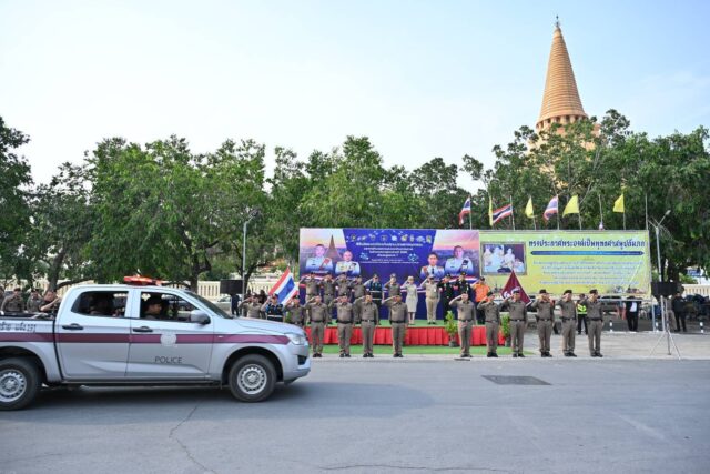 ตำรวจภูธรจังหวัดนครปฐม บูรณาการหน่วยงานทุกภาคส่วน ร่วมปล่อยแถวระดมกวาดล้างอาชญากรรมและอำนวยความสะดวกด้านการจราจรในช่วงเทศกาลสงกรานต์ 2568