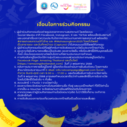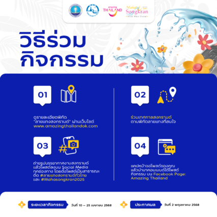 สำหรับนักท่องเที่ยวที่สนใจสามารถดูรายละเอียดกิจกรรมและเข้าชม “ลายแทงสงกรานต์ทั่วไทย” และ “ลายแทงกางเกงอัตลักษณ์เฉพาะถิ่น” ได้ที่เว็บไซต์ www.amazingthailandok.com หรือสอบถามข้อมูลเพิ่มเติมได้ที่ Line Official Account: @amazingok