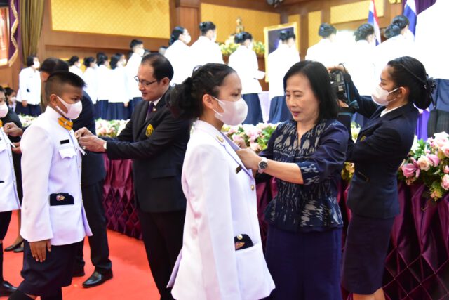 หม่อมหลวงปนัดดา ดิศกุล สมาชิกวุฒิสภา เป็นประธานพิธีรับและประดับเข็ม ภปร. ให้แก่นักเรียนระดับชั้น ม.1 และ ม.4 ที่เข้าใหม่ ประจำปีการศึกษา 2567 ของโรงเรียนกาญจนาภิเษกวิทยาลัย นครปฐม (พระตำหนักสวนกุหลาบมัธยม)