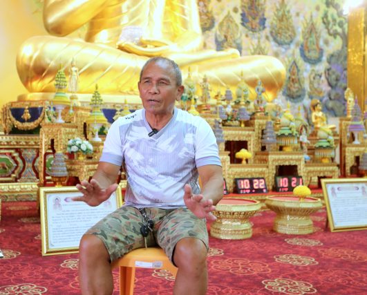 ” ผมต้องขอขอบคุณหลวงพี่น้ำฝนที่มีความห่วงใยและเมตตาในการดูแลใส่ใจเรื่องสุขภาพผม ซึ่งถึงแม้ใครจะมองว่าท่านจะเสียงดังและดูดุแต่ถ้าได้มาสัมผัสจริงแล้วจะรู้ว่าท่านเป็นคนใจนักเลงหมายถึงเป็นคนที่ใจถึงพูดอะไรแล้วทำจริงเพราะมีโครงการหลายหลายเรื่องที่ท่านได้ทำเอาไว้เป็นประโยชน์กับสังคมซึ่งผมก็เป็นส่วนหนึ่งที่ท่านได้ใส่ใจดูแ และแสดงความเป็นห่วงทำให้ผมมีดวงตาที่มองเห็นเป็นปกติได้จนถึงวันนี้ ต้องกราบขอขอบพระคุณหลวงพี่น้ำฝนที่ช่วยเหลือและผลักดันให้ผมได้เป็นครูมวยและดูแลในเรื่องสุขภาพต้องขอขอบคุณมากๆครับ” สำราญศักดิ์ เมืองสุรินทร์ กล่าวปิดท้าย