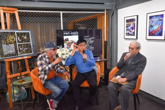 บรรยากาศในงานยังเต็มอิ่มไปด้วยความอบอุ่นจากมิตรสหายหลากหลายวงการ มีกิจกรรมบทสนทนาเรื่องศิลปะร่วมสมัย ในมุมมองของศิลปิน นักคิด นักเขียน อ.ธีรยุทธ บุญมี นักวิชาการ นักวิจารณ์การเมือง และนักเขียนรางวัลศรีบูรพา