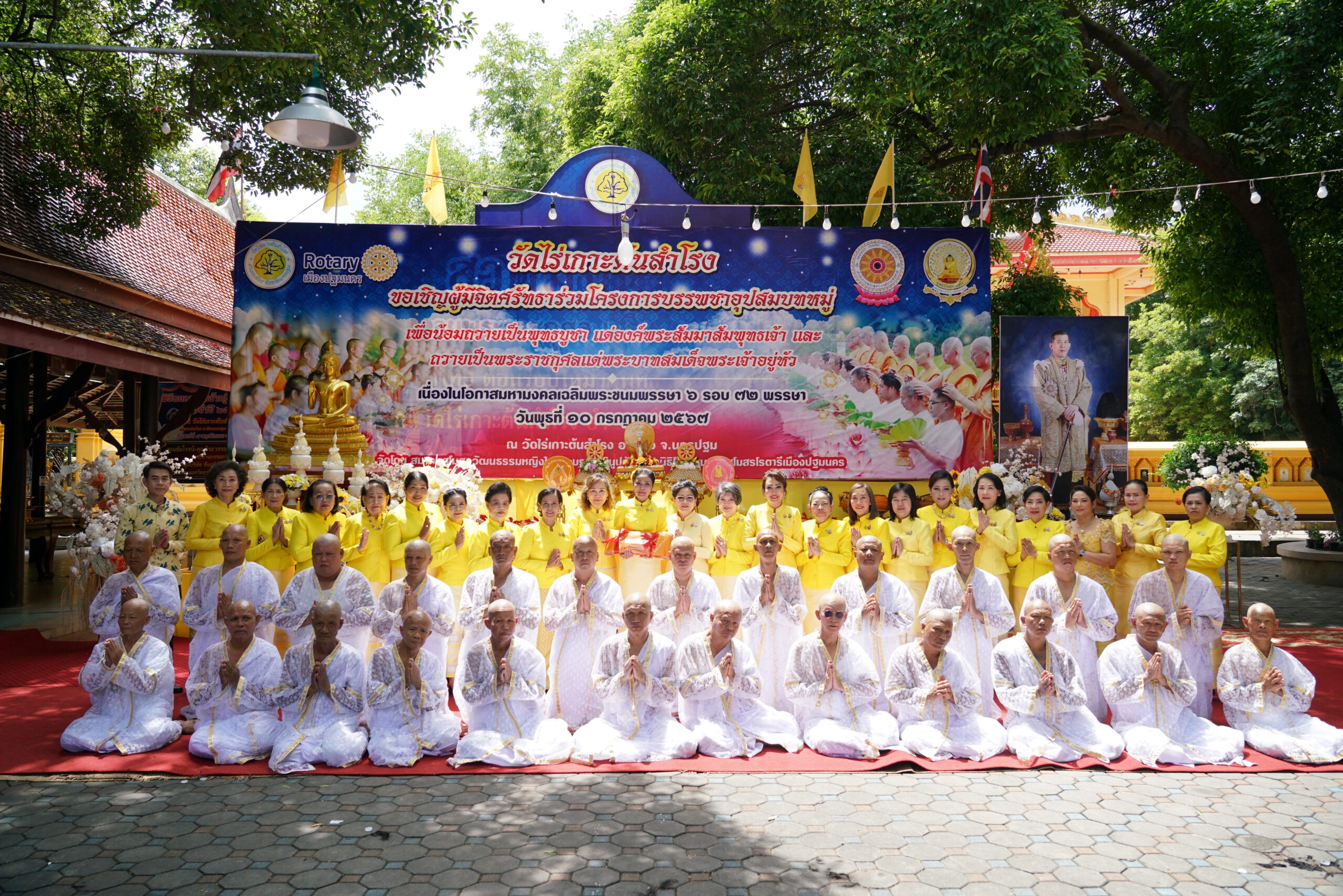 โรตารี่เมืองปฐมนคร สมาคมวัฒนธรรมหญิงในพระบรมราชินูปถัมภ์ วัดไร่เกาะต้นสำโรง มูลนิธิโพธิฆเนสโร และผู้มีจิตศรัทธา ได้ร่วมกัน จัดพิธีบรรพชาอุปสมบท (บวชนาคหมู่) เพื่อเฉลิมพระเกียรติ ถวายเป็นพระราชกุศล แด่พระบาทสมเด็จพระปรเมนทรรามาธิบดีศรีสินทร มหาวชิราลงกรณ พระวชิรเกล้าเจ้าอยู่หัว ทรงเจริญพระชนมพรรษา 6 รอบ หรือ 72 พรรษา ในวันที่28กรกฎาคม 2567 เพื่อเฉลิมพระเกียรติพระบาทสมเด็จพระเจ้าอยู่หัว เนื่องในโอกาสพระราชพิธีมหามงคลเฉลิมพระชนมพรรษา 6 รอบ 28 กรกฎาคม 2567 เพื่อเป็นการส่งเสริมให้ประชาชนได้มีโอกาสร่วมแสดงความจงรักภักดีและถวายพระราชกุศล รวมทั้งศึกษาพระธรรมวินัยและปฏิบัติสมณธรรมตามหลักของพระพุทธศาสนา เพื่อศึกษาพระธรรมวินัย บำเพ็ญสมณธรรมและเรียนรู้พระพุทธศาสนา ในการนำมาใช้เป็นหลัก ประพฤติปฏิบัติในชีวิตประจำวันและการปฏิบัติงานอันจะเป็นประโยชน์ต่อสังคมประเทศชาติสืบไป