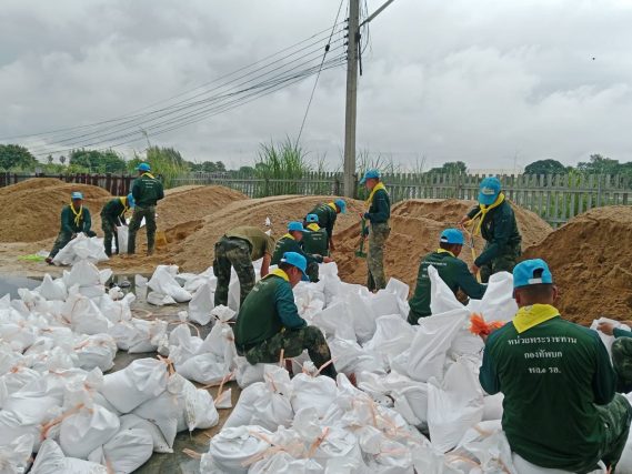 ส่วนที่จังหวัดอ่างทอง อำเภอป่าโมก สั่งการให้ เจ้าหน้าที่ทหารสังกัด ป.1 พัน.31 รอ. และ ป.1 พัน.11 รอ. สนับสนุนการเสริมแนวกระสอบทรายและ อุดรอยรั่วคันกั้นน้ำ หมู่ 2 ต.ป่าโมก พร้อมเครื่องจักรหนักเพื่อป้องกันน้ำทะลักเข้าชุมชน
