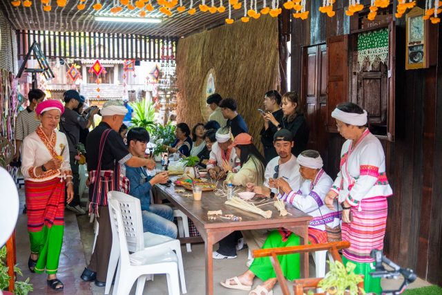 ปิดท้ายด้วยการเยี่ยมชม บ้านป่าตาล โหม้งบวกค้าง ร่วมเรียนรู้งานหัตถศิลป์ผ่าน Workshop การทำ “ตะแหลว” เครื่องจักสานมงคล และสัมผัสศาสตร์การนวดตอกเส้น ภูมิปัญญาการบำบัดพื้นบ้านที่สืบทอดกันมา นับเป็นพื้นที่แห่งการเรียนรู้ที่เปิดโอกาสให้ลงมือทำจริง เชื่อมโยงผู้คนเข้ากับรากเหง้าทางวัฒนธรรมผ่านงานหัตถกรรมที่มีชีวิต พร้อมทั้งเป็นโมเดลต้นแบบในการสร้างรายได้และความภาคภูมิใจให้กับชุมชนอย่างยั่งยืน