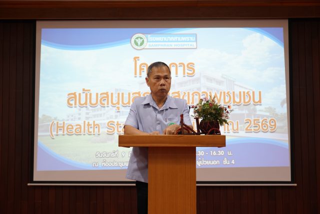 นายสุภัทร กตัญญูทิตา รองนายแพทย์สาธารณสุขจังหวัดนครปฐม เป็นประธานในพิธีเปิด “โครงการสนับสนุนสถานีสุขภาพชุมชน (Health Station) ปี 2569 อำเภอ สามพราน พร้อมด้วย นพ.ทินกร ชื่นชม รองนายแพทย์สาธารรสุขจังหวัดนครปฐม(ผอ.รพ.สามพราน) นางพัชรี เกษรบุญนาค รอง ผอ.รพ.สามพราน , คณะวิทยากร ทีมผู้จัด ผอ.รพ.สต./จนท. ท่านอรัญญา วัชระธาดาสกุล ประธาน อสม.อำเภอสามพราน และมีผู้เข้าร่วมอบรมประกอบด้วย เจ้าหน้าที่สาธารณสุข และอาสาสมัครสาธารณสุขประจำหมู่บ้าน (อสม.) ในอำเภอสามพราน โดยมี นายพัชรวัฒน์ พัชรเกียรติกนก สาธารณสุขอำเภอสามพราน กล่าวรายงานวัตถุประสงค์